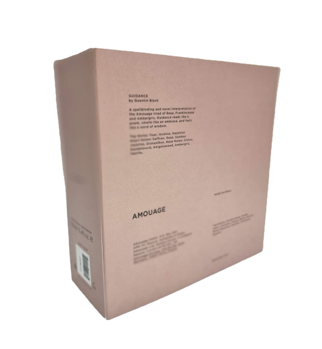 رایحه Guidance با نتهای اولیهی گلابی، صمغ کندر و فندق آغاز میشود، سپس به قلبی گرم از زعفران، رز، یاس سامباک و اوسمانتوس میرسد، و در پایه به نتهای چوب صندل، کهربا، وانیل، آکیگالا و عنبر خامهای ختم میشود.